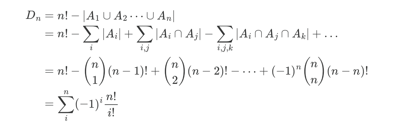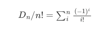 In other words, the number of derangements of n Dₙ is: