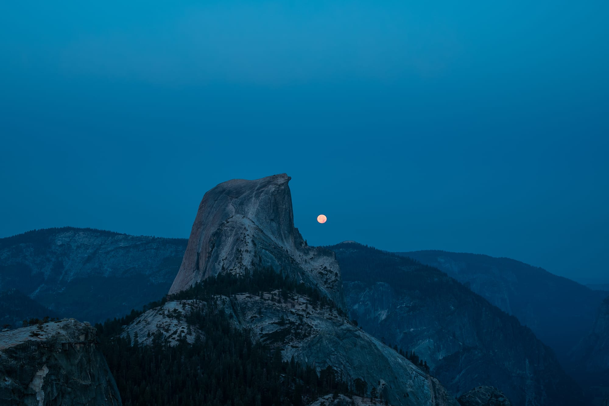 I awoke under a blanket of stars in a cold sweat from the fever dreams of a Covid infection I did not yet know that I had (but which would later explain why this trip had proved so miserably difficult). And as I considered whether I was hot, cold, or some third temperature that only a fever can create, I looked over to see a glow of light begin to form on the horizon, at the base of the gaping mouth made by Half Dome’s sheer face. I had gone to sleep without a tent, on the top of Quarter Dome with a commanding view of Yosemite’s most iconic feature, and some combination of fever and fate had brought me awake just as the moon began to rise. It slowly, and meticulously followed an arc through the sky that intersected perfectly with the tip of Half Dome, as if it was trying to trace the outline of the granite that had shorn off and been swept away in the ancient past to leave behind this remaining hulking half.